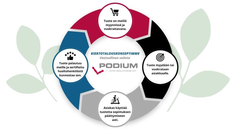 Palvelumme avulla sinulla on aina moderni kuntosali tiloissasi ilman suuria investointeja, ympäristönäkökulmista tinkimättä!